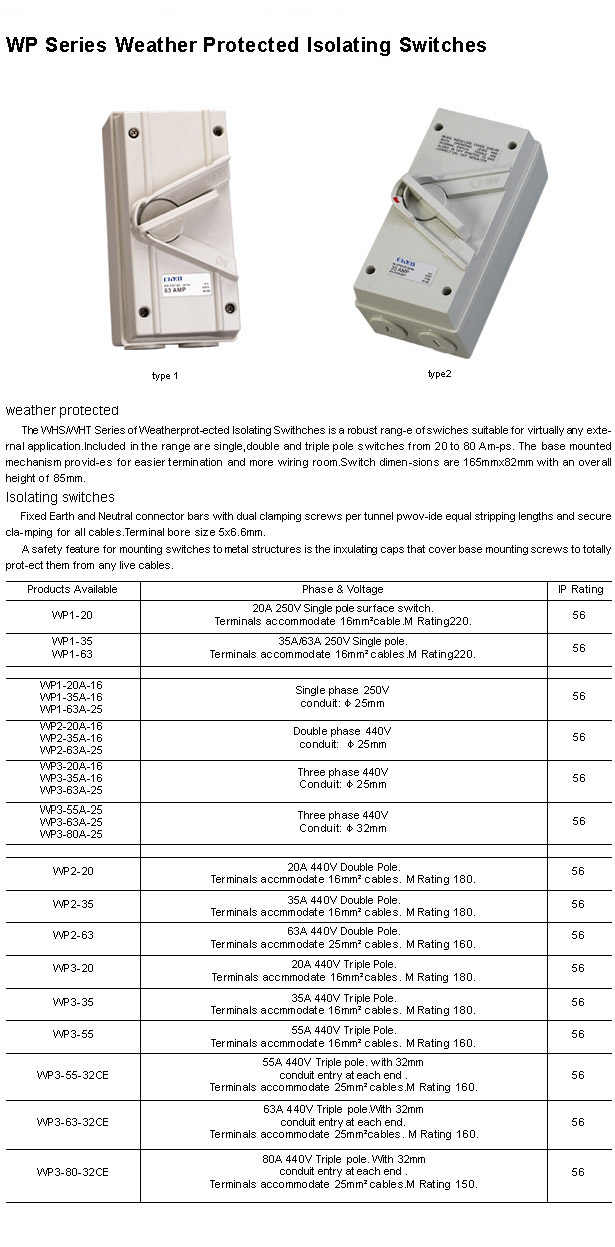 - WP Weather Proof Isolation Switch