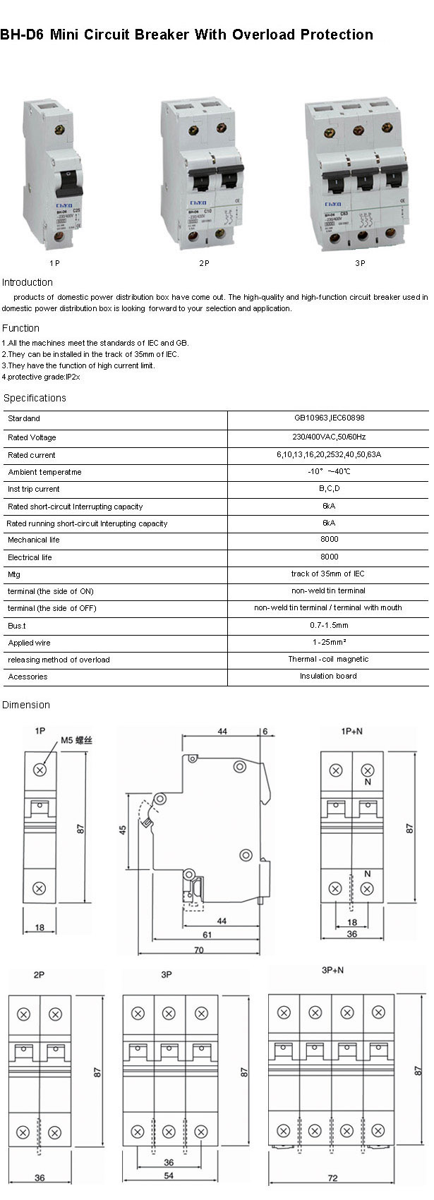 BH-D6 Mini Circuit Breaker