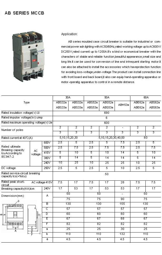 AB Series Moulded Case Circuit Breaker