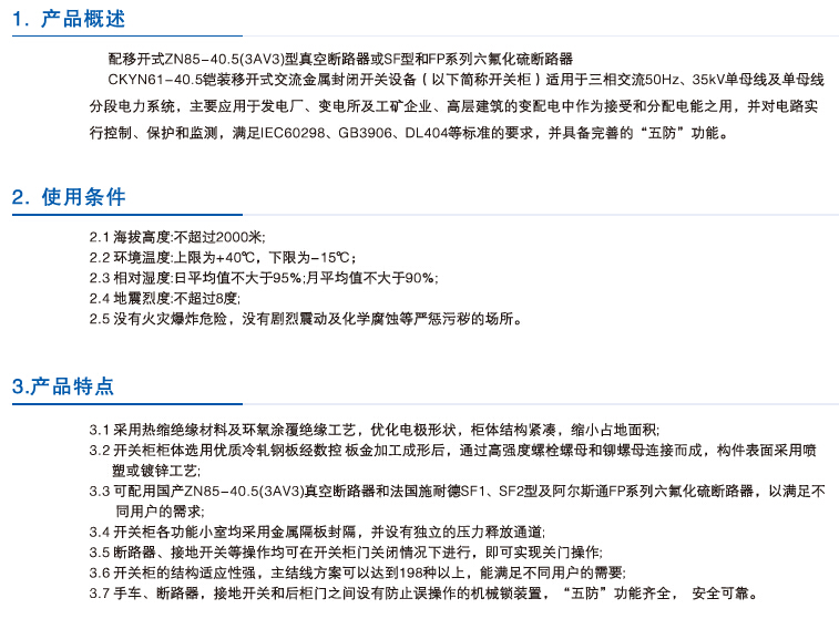 CKYN61-40.5铠装移开式交流金属封闭开关设备