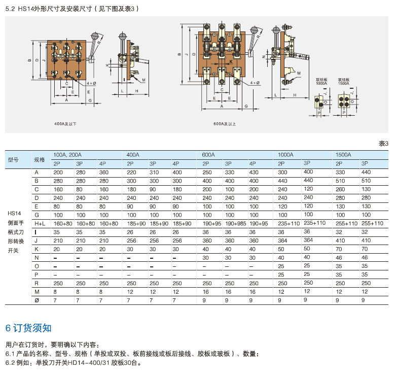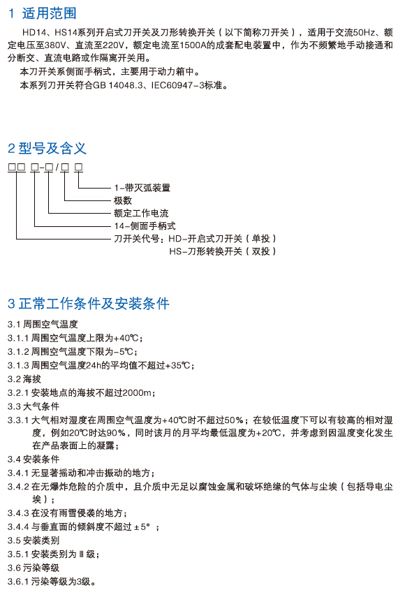 HD14、HS14系列开启式刀开关及刀型转换开关